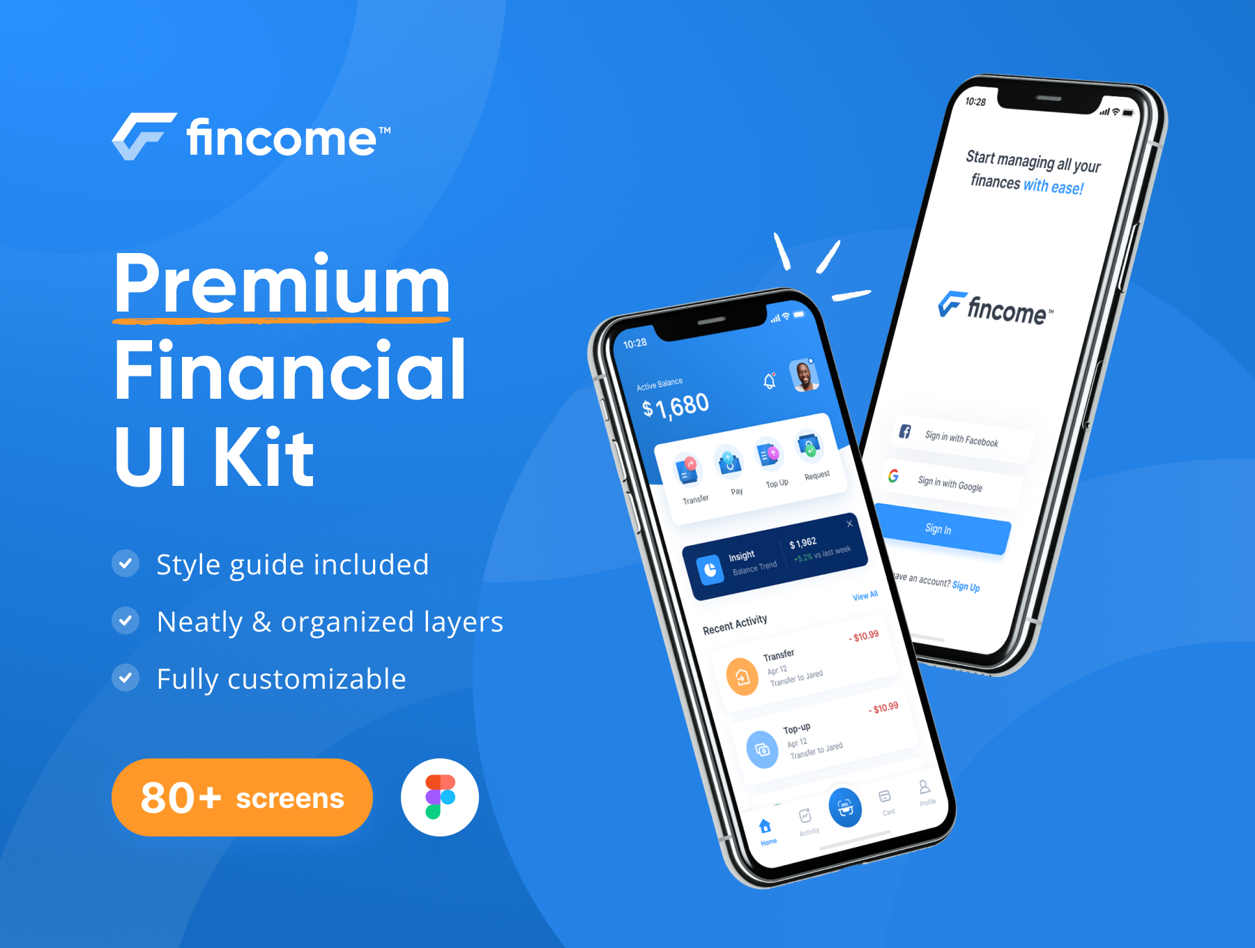 Fincome is a Premium and High-Quality Finance App UI Kit with 80+ high-quality screens and easy to use in Figma crafted with Love and UX-friendly design.Design your next Project in minutes or get ideas with these new screen designs.- Made with Google font- Usable Screens- Custom Styles- Clear Structure